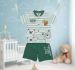 Bottom: Solid green shorts with a matching "Happy Panda" graphic on the left leg.