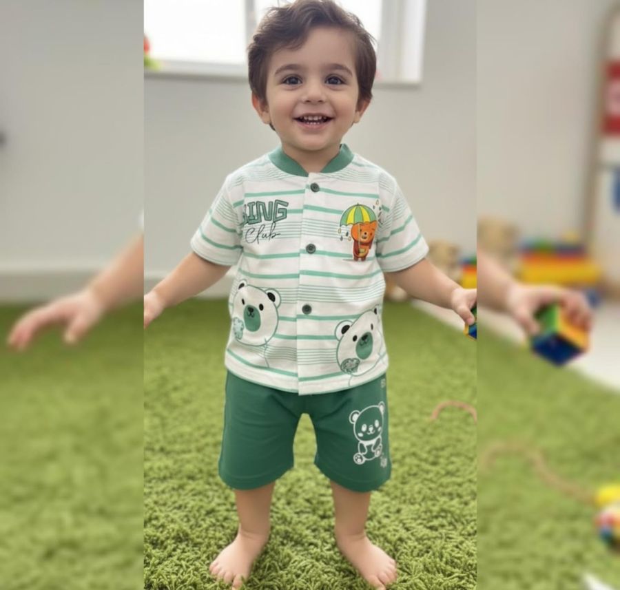 Set Type: Two-piece coordinated summer set (Shirt and Shorts).