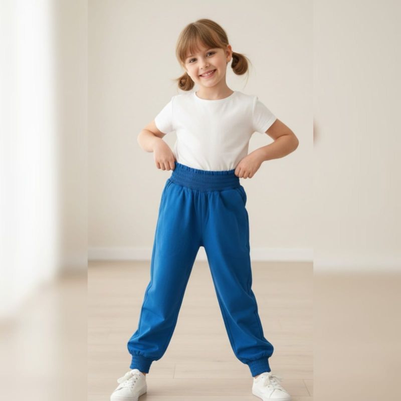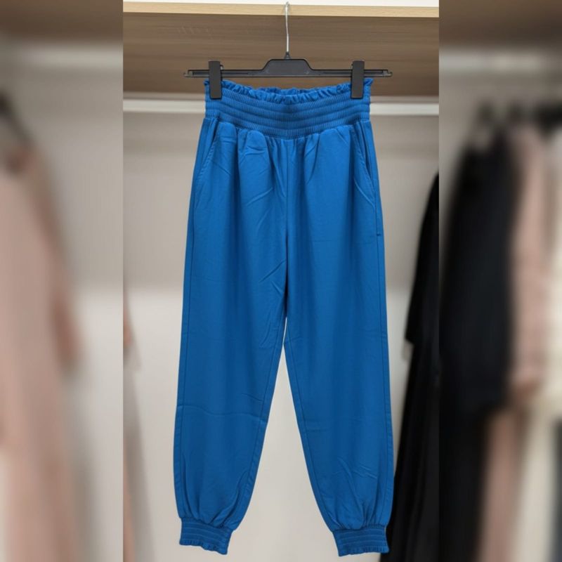 Those are a vibrant pair of cerulean blue joggers! They look like the perfect mix of "I'm productive" and "I'm ready for a nap."