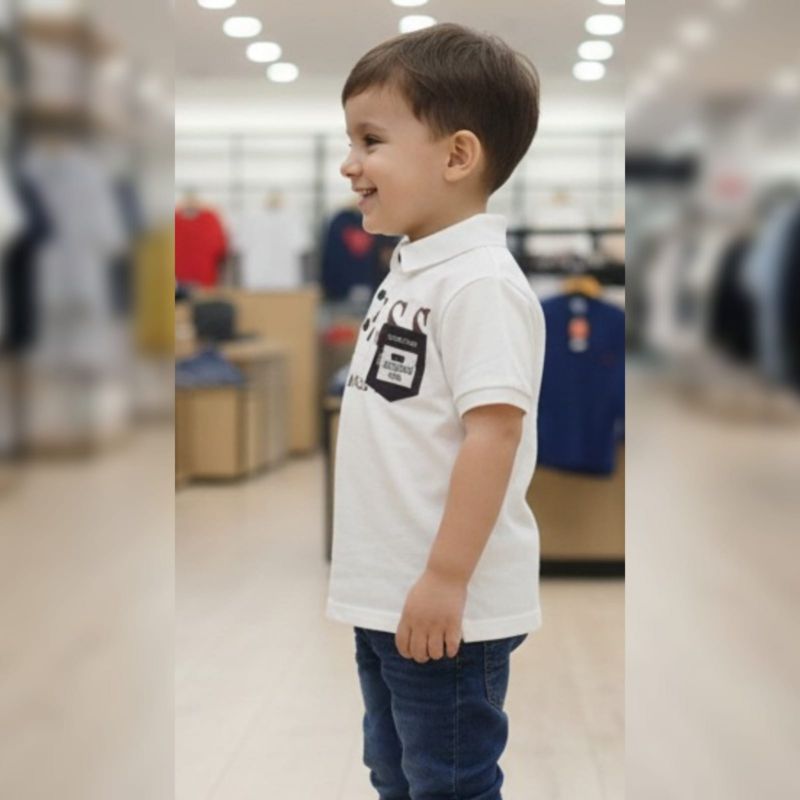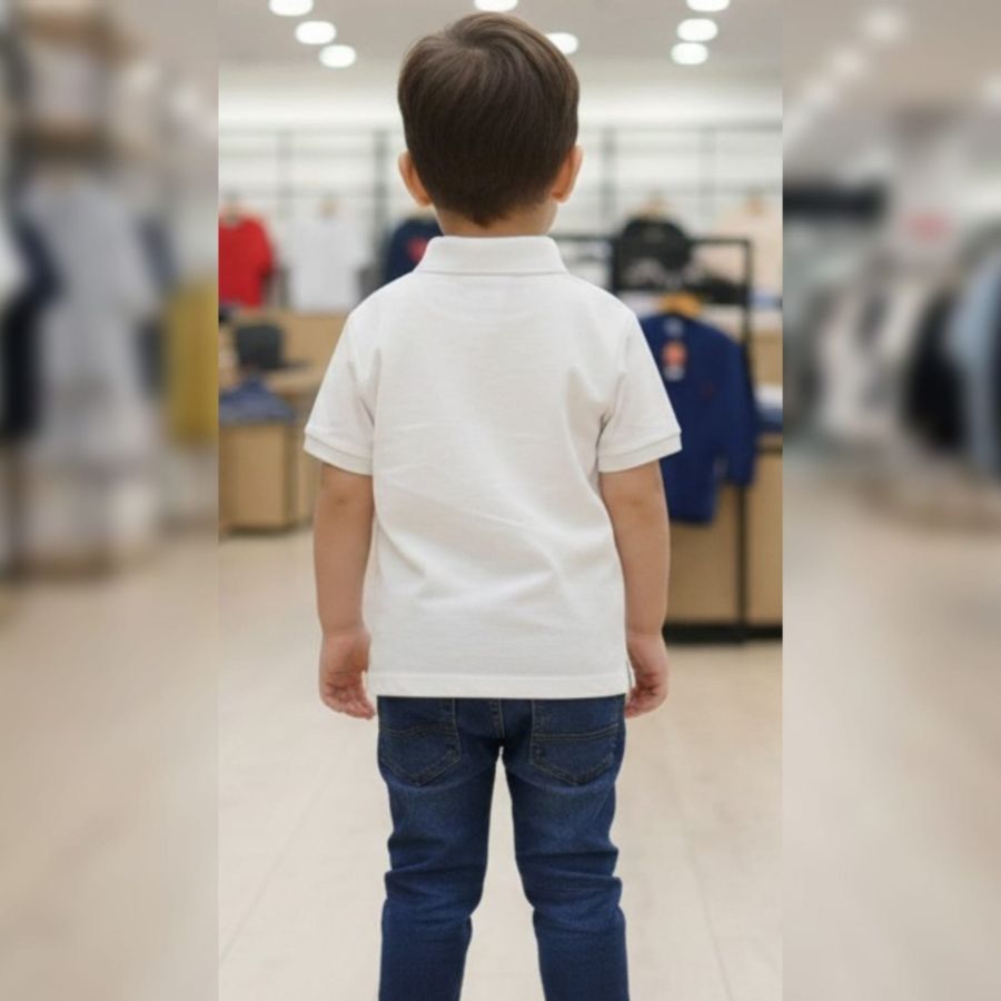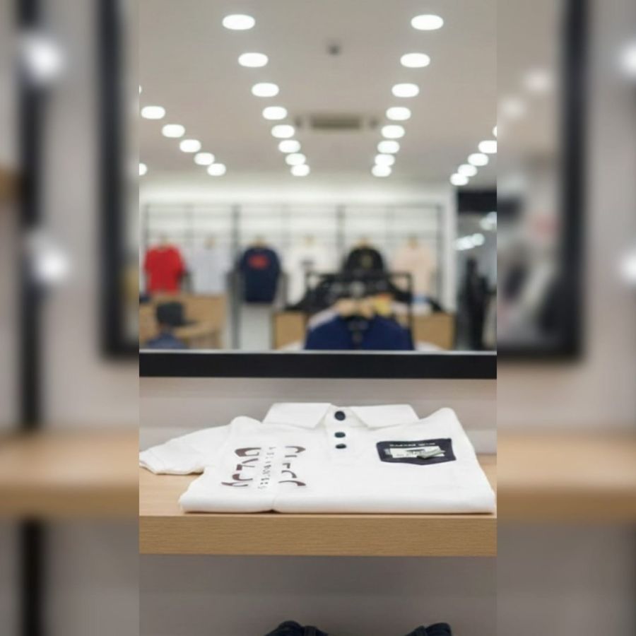 It looks like you've captured a crisp, professional shot of a white polo shirt on display. The depth of field is great—the blurred retail background really makes the product in the foreground pop.