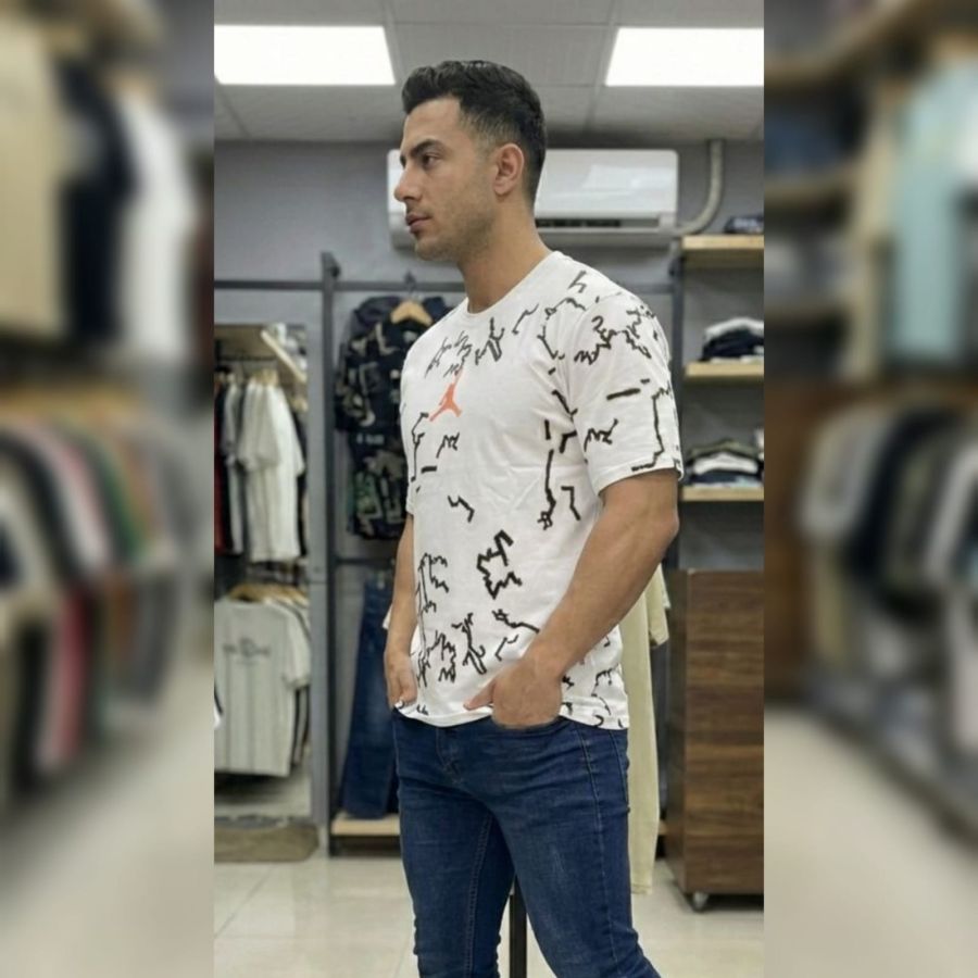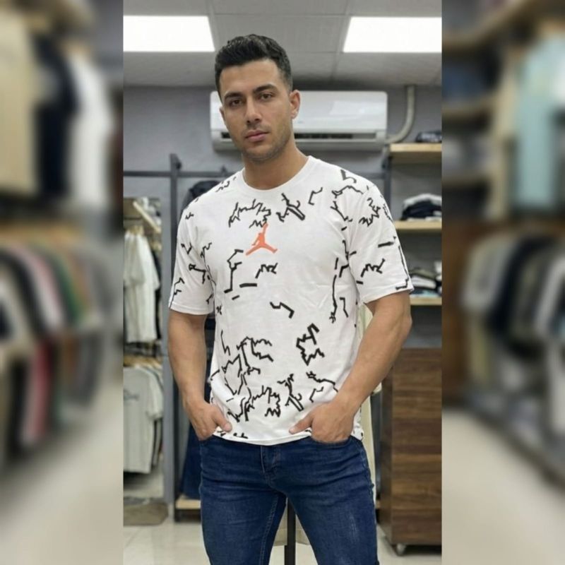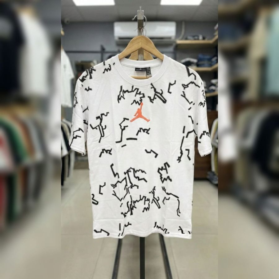 That is a sharp-looking Jordan Brand t-shirt! It has a very distinct "streetwear" aesthetic that blends classic athletic branding with modern graphic design.