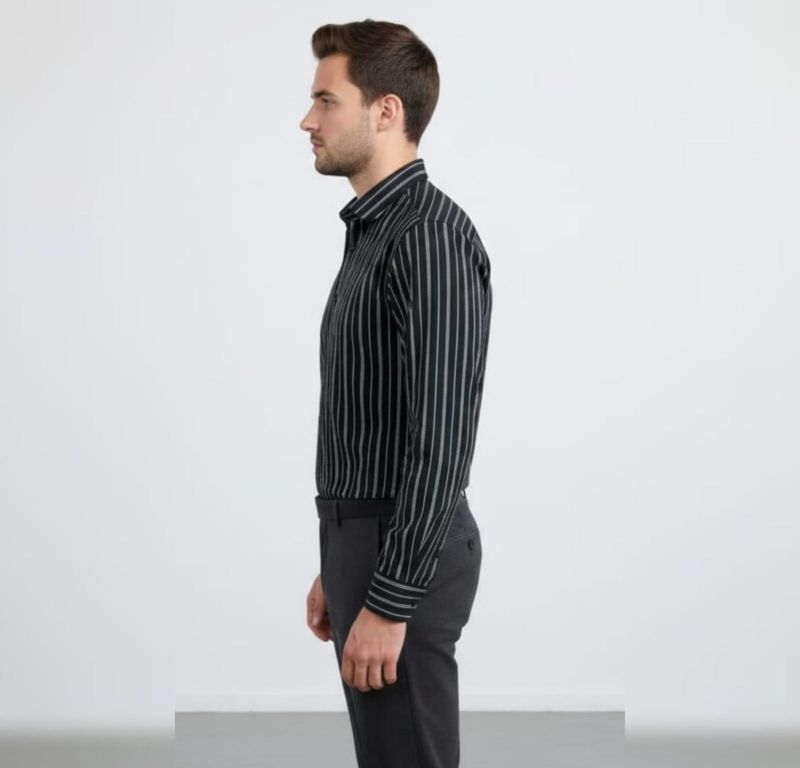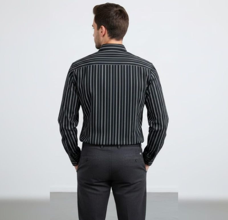 That is a sharp-looking shirt! A black pinstripe button-down is a versatile staple—it’s got that "business professional" vibe but can easily lean into a sleek, evening look.