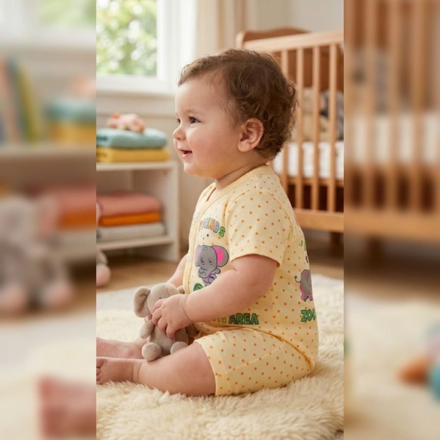 That is an adorable baby set! It looks like a classic two-piece "Jhabla" and shorts set, which is usually perfect for keeping little ones comfortable during the warmer months.