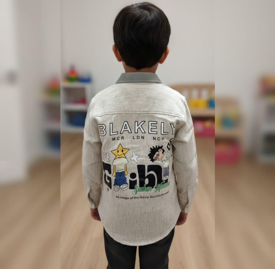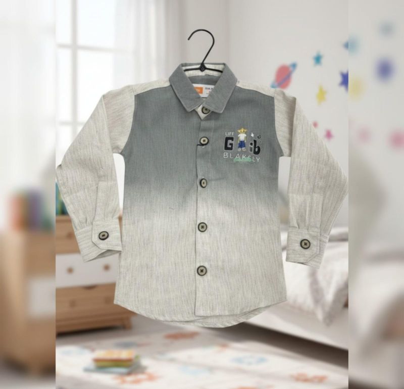 This is a stylish, modern button-down shirt for boys, featuring a contemporary ombré effect and a textured finish. It’s a versatile piece that balances casual comfort with a smart-casual aesthetic.