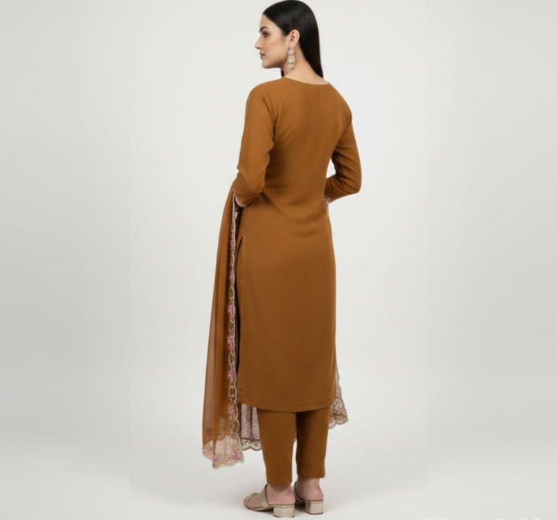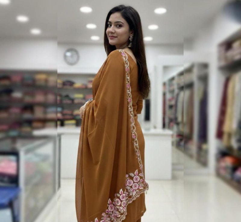 This exquisite 3-piece unstitched ensemble is designed for the modern woman who values grace and versatility. Crafted from premium Georgette (Gorget), the fabric offers a fluid drape and a lightweight feel, making it perfect for both formal gatherings and festive celebrations.
