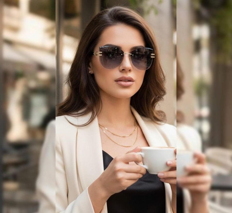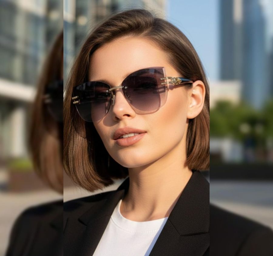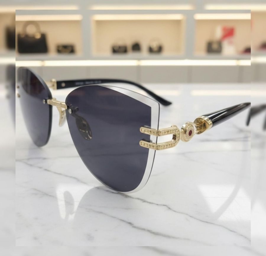 Elevate your look with these premium rimless sunglasses. Featuring diamond-cut edge lenses and ornate gold-tone temple detailing, these glasses offer a sophisticated "high-fashion" aesthetic that works for both casual outings and formal events.