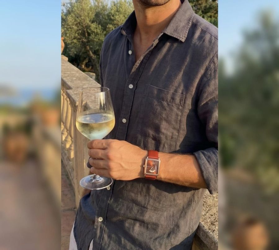 Elevate your wrist game with this masterpiece of geometric design. Featuring a bold, burnt orange dial encased in a luxurious rose-gold rectangular frame, this watch blends mid-century elegance with modern flair.