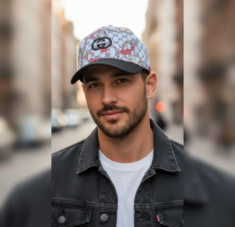 The Print: It features the "GG" monogram, which is a staple of the fashion house. However, the addition of the red "GUCCI" rectangular blocks and the large, stylized interlocking Gs in the background suggests this is a more contemporary or streetwear-inspired design.