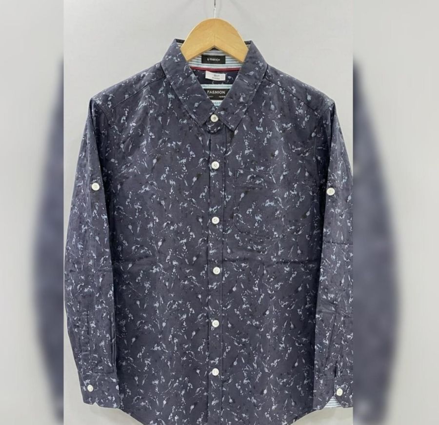 Design: The shirt has an all-over white splatter pattern on a solid black base, giving it a modern, streetwear, or "grunge" aesthetic.