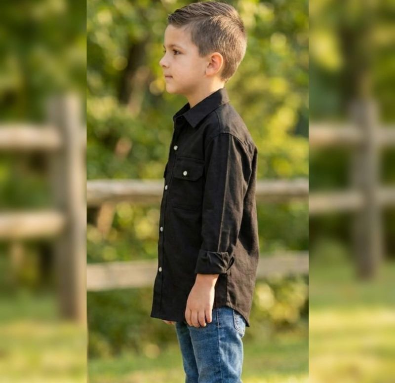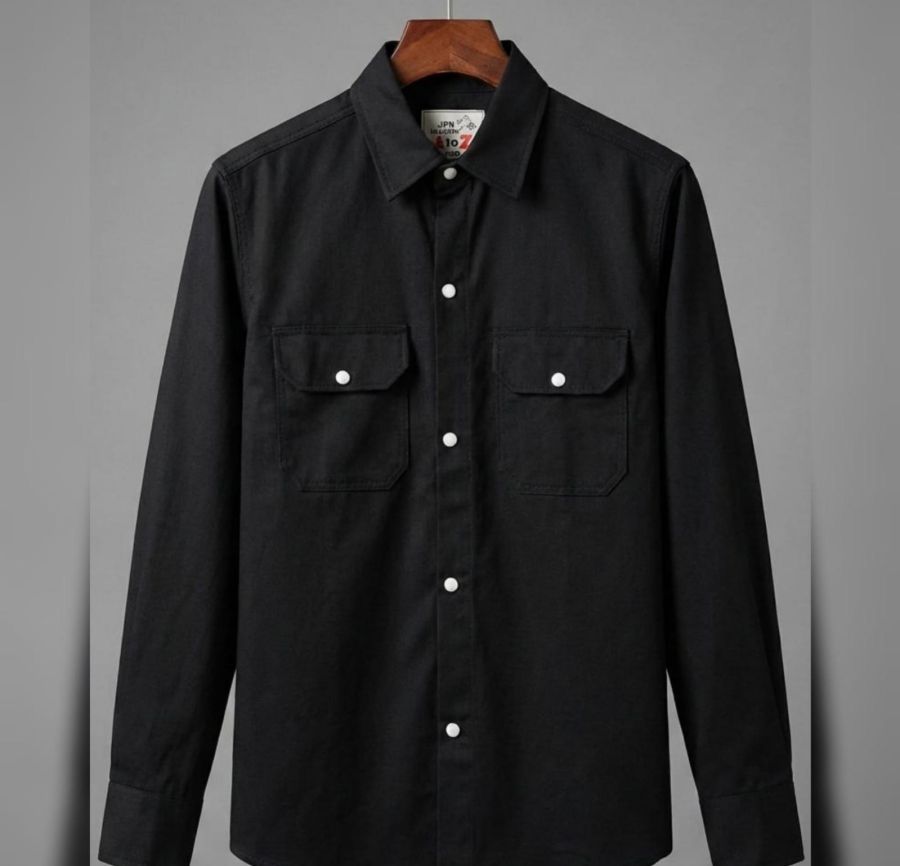 That’s a sharp-looking piece! It’s a classic Black Utility/Workwear Shirt that gives off a rugged yet polished vibe. It’s the kind of versatile staple that works for a family photoshoot, a casual outing, or even a mini "tough-guy" look with some denim.