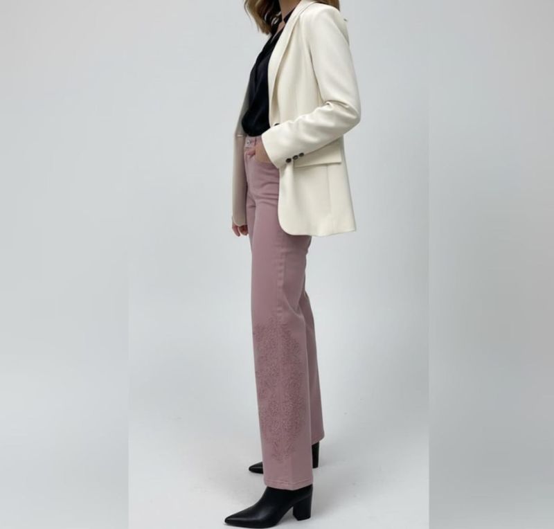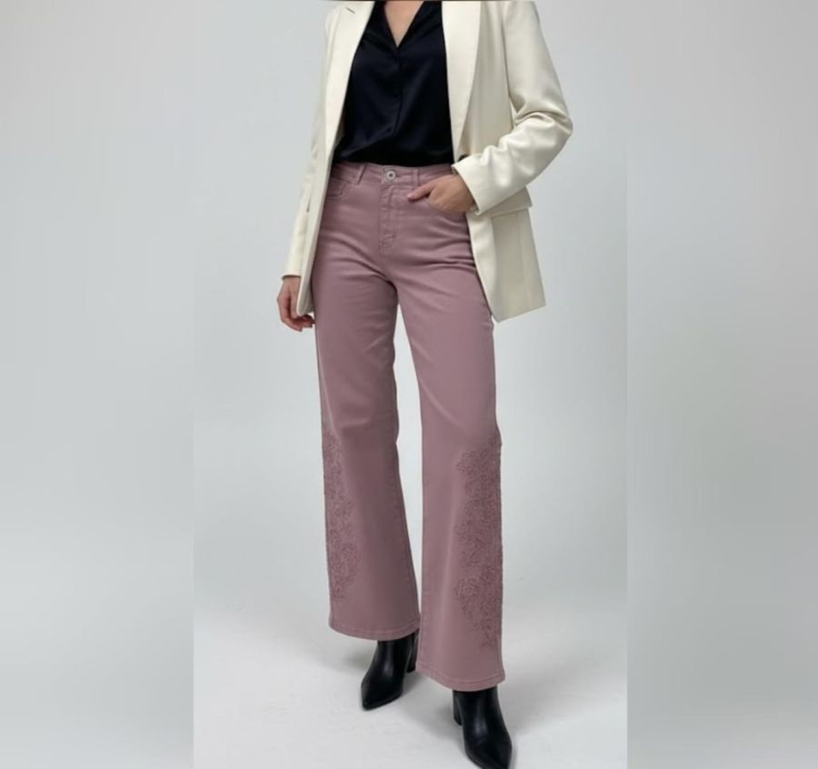 Step into timeless elegance with the Blossom Flare. These unique trousers feature a stunning, tone-on-tone floral embroidery along the outer hem, adding a touch of artisanal luxury to your wardrobe. Crafted with a flattering high-waist and a sophisticated flared leg, they offer a vintage silhouette that elongates the frame while providing all-day comfort.