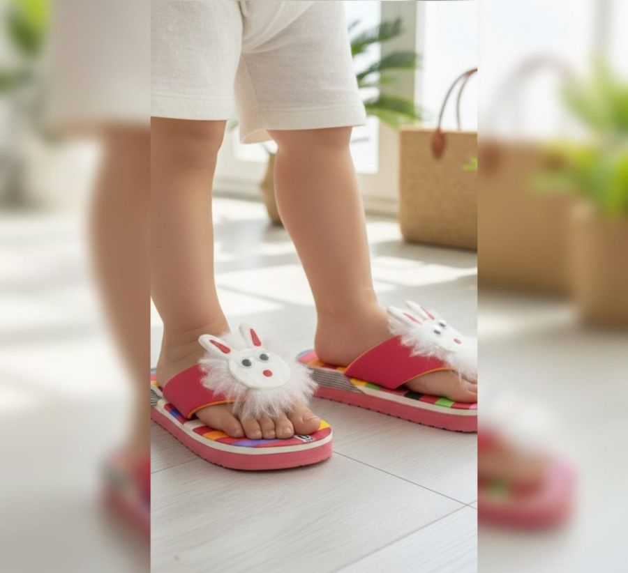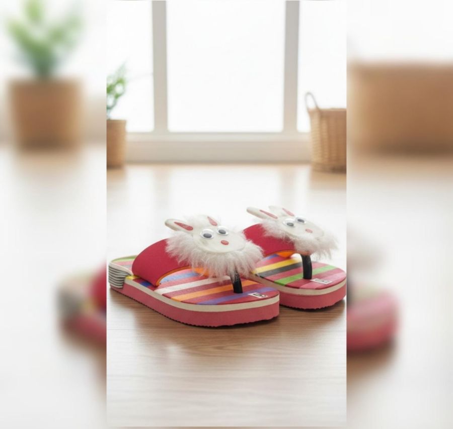 Brighten up your little one's day with the Bouncy Bunny slides. These lightweight flip-flops feature a fun, multi-colored striped base and a fluffy bunny face on the straps for a playful look. The soft, flexible foam sole provides easy comfort, making them perfect for indoor wear or sunny outdoor adventures.