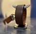 That is a classic-looking belt. It features a silver-toned metal buckle in the shape of the brand's iconic logo paired with a textured brown leather strap.
