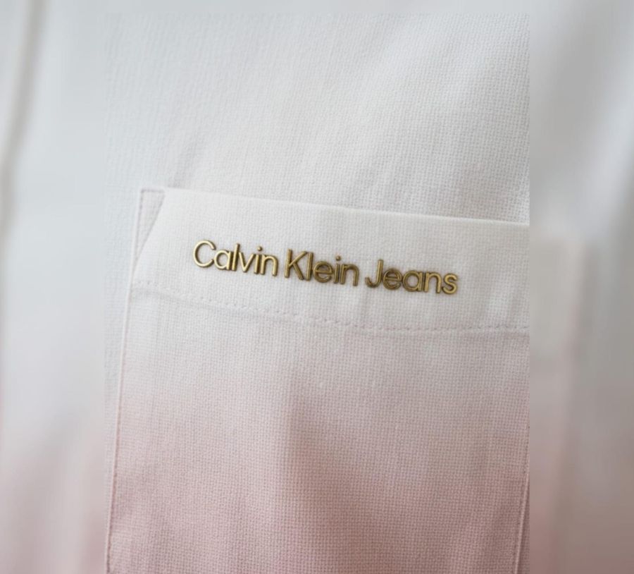 Branding: A signature Calvin Klein Monogram ("cK") logo is embroidered in a subtle, tonal thread on the left chest pocket.