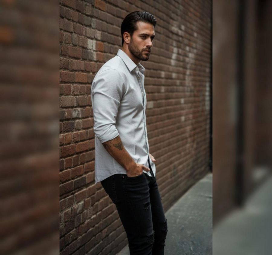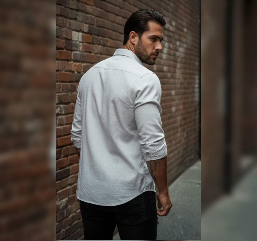 Features a classic point collar, a single chest pocket, and a clean button-up front.