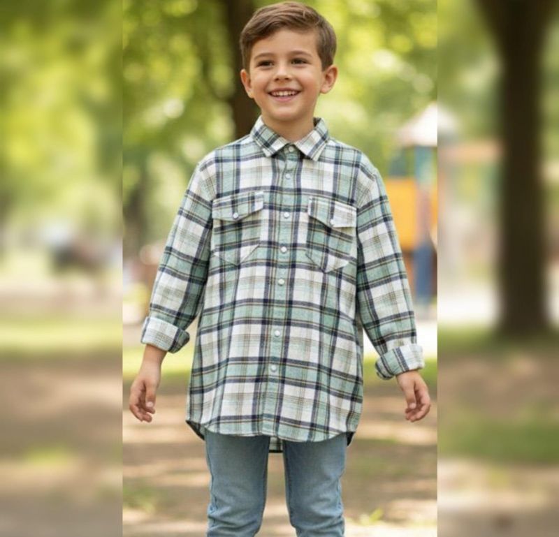 CHECK PRINTED GREEN SHIRT
