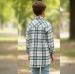 long-sleeved flannel shirt, often referred to as a "shacket" if the fabric is heavy enough. It features a timeless plaid (tartan) pattern in a refreshing palette of sage green, cream, and charcoal grey.