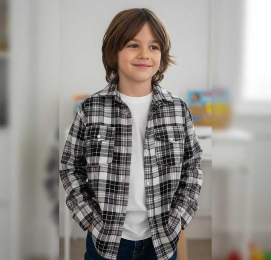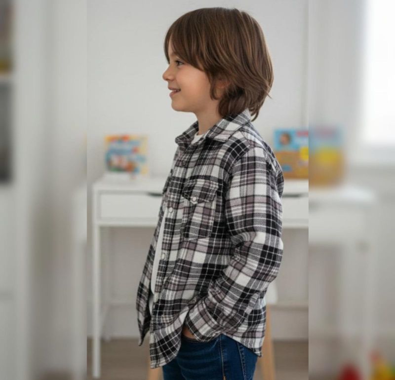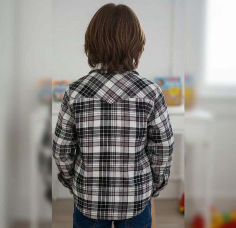 This is a classic monochrome flannel shirt that’s perfect for a rugged yet clean look for a toddler. Based on the image, here is a detailed breakdown and a standard size guide for a 2-year-old.