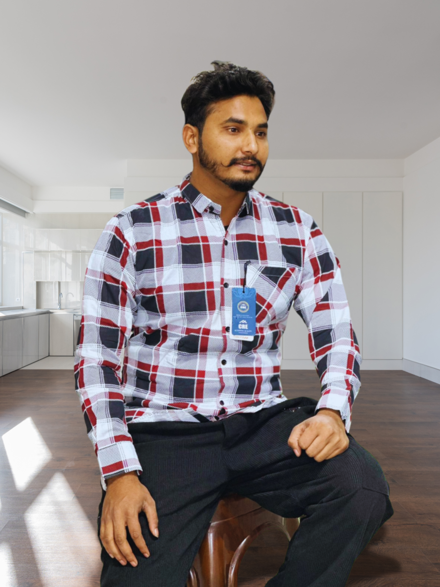 This Men's Check Shirt Is Made From High-quality Cotton Fabric, Ensuring Superior Comfort And Breathability.