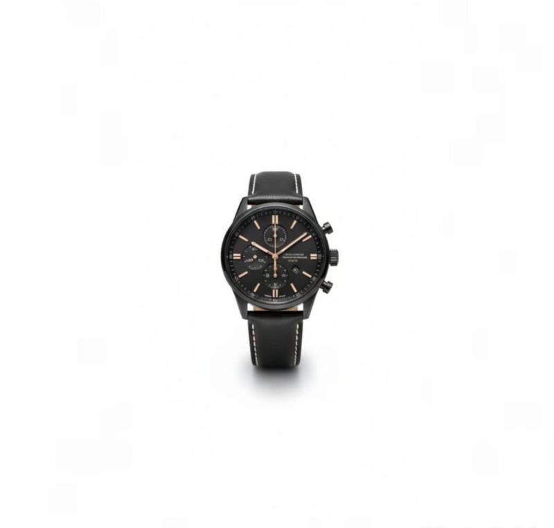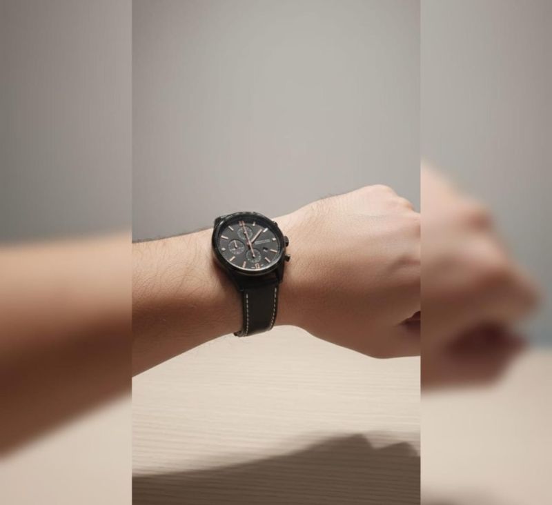That’s a sharp-looking chronograph! It has a very clean, "stealth" aesthetic with those rose gold accents—definitely a versatile piece for both casual and semi-formal settings.