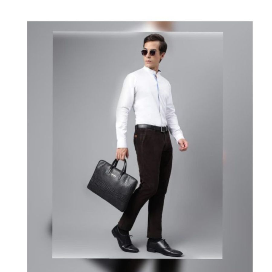 Men’s Premium Slim-Fit Corduroy Trousers Elevate your style with these rich dark brown corduroy pants.