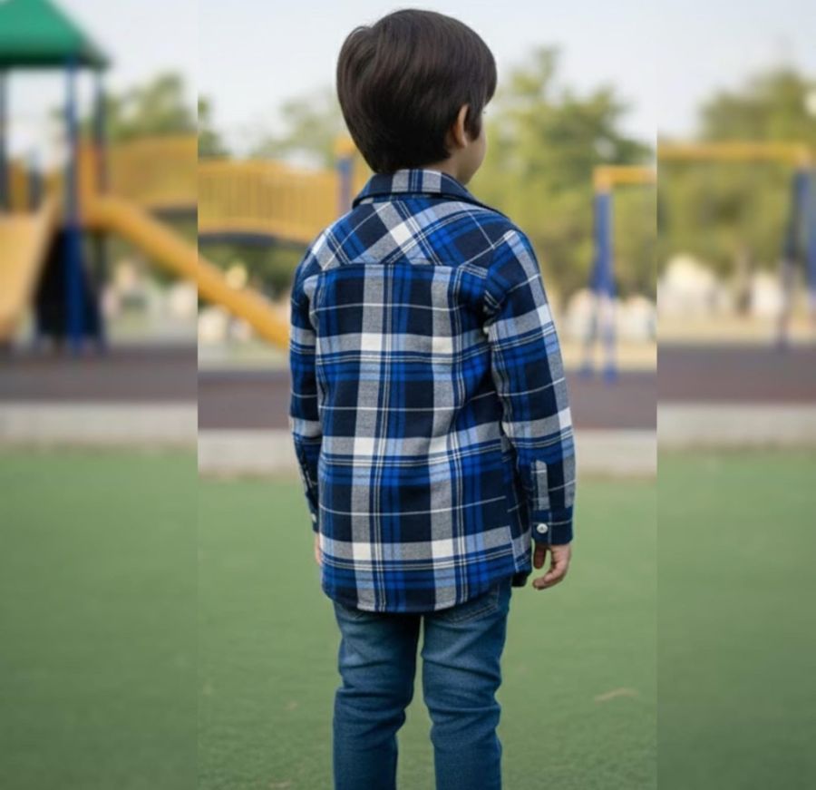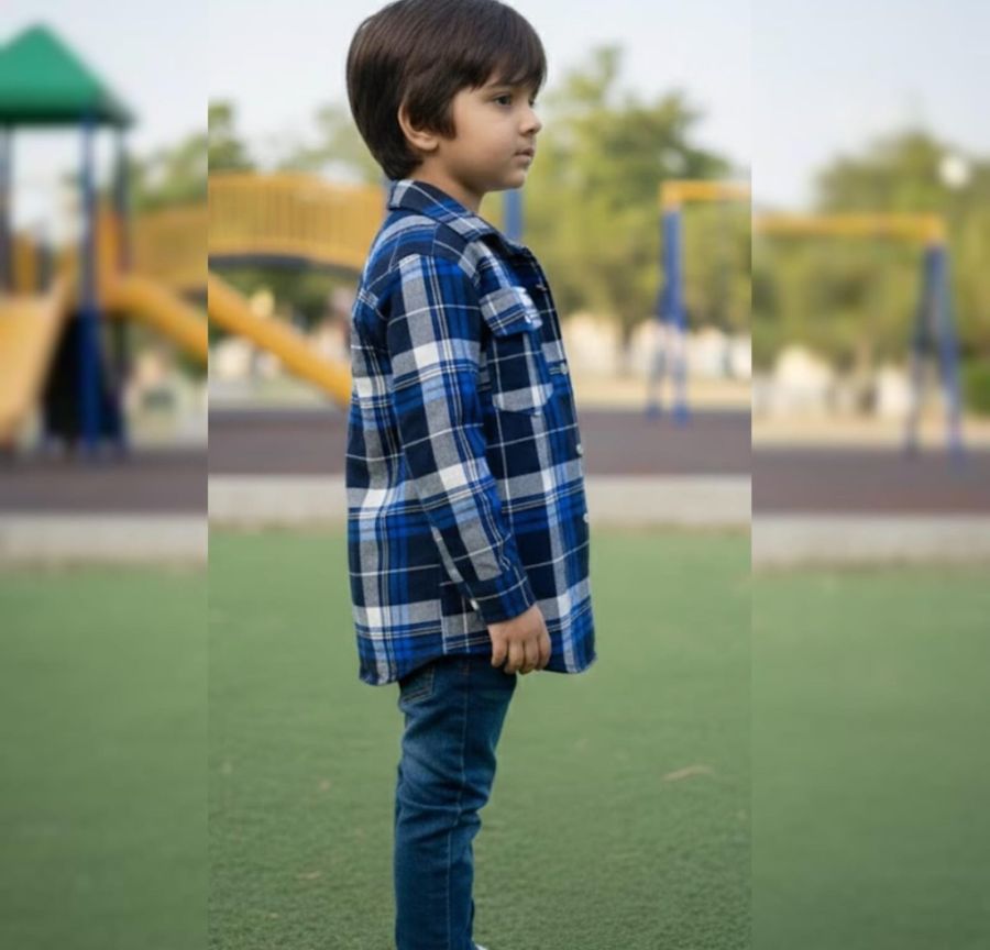 Equip your child's style with the Cobalt Peak Plaid Flannel. This premium button-down shirt features a classic check pattern in a bold palette of royal blue, navy, and crisp white. Designed with dual button-flap chest pockets and a structured collar,