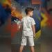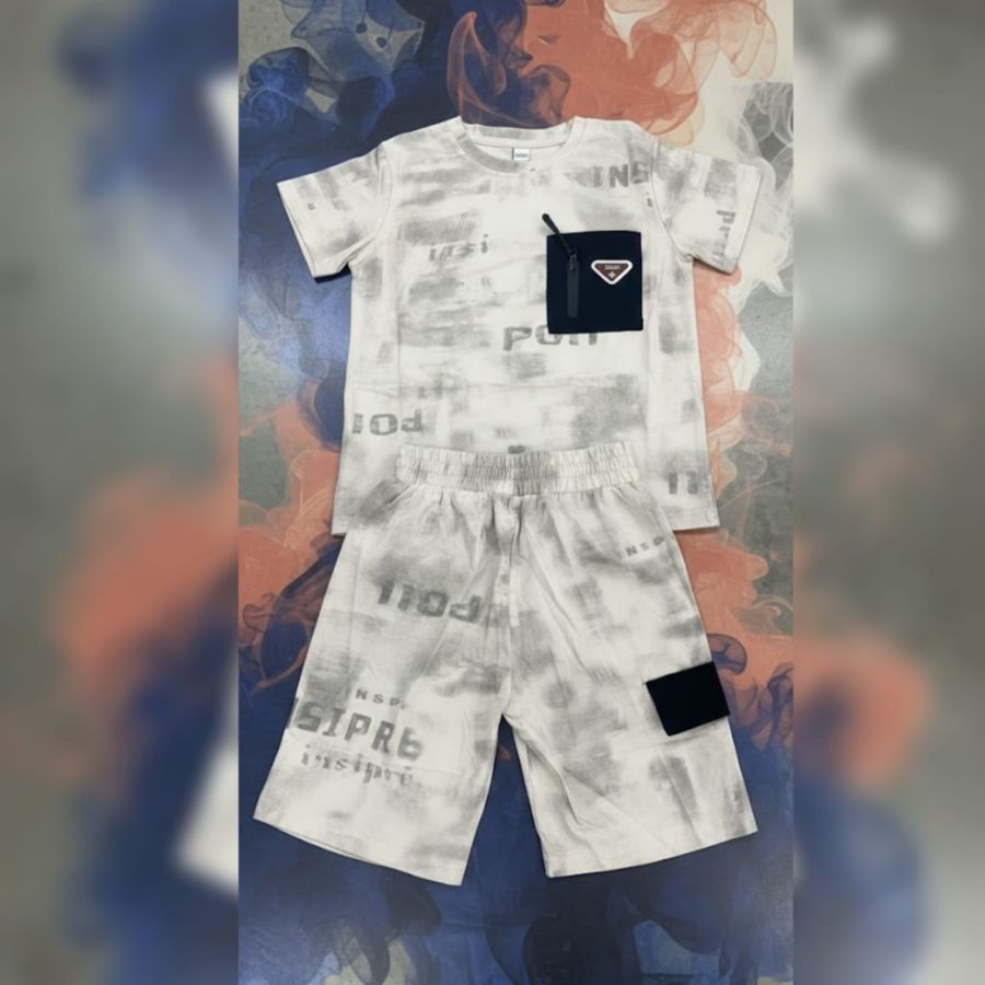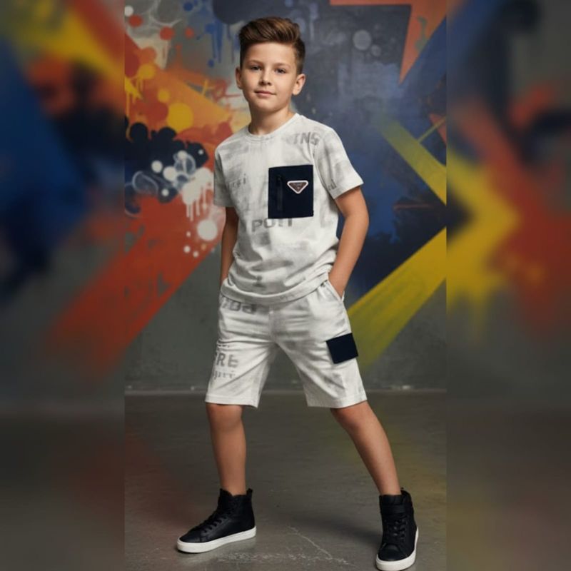 Neckline: Classic crew neck. Pocket: A contrasting solid black zippered patch pocket on the left chest. Emblem: A triangular patch logo is positioned on the chest pocket.