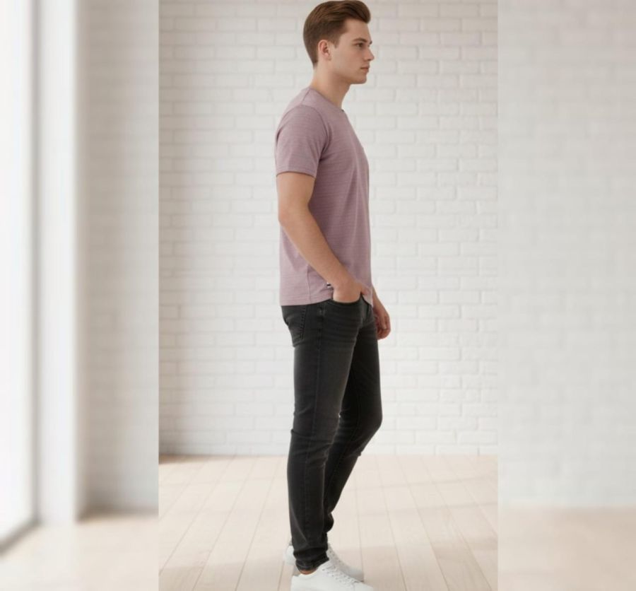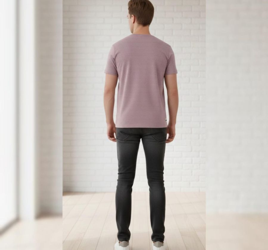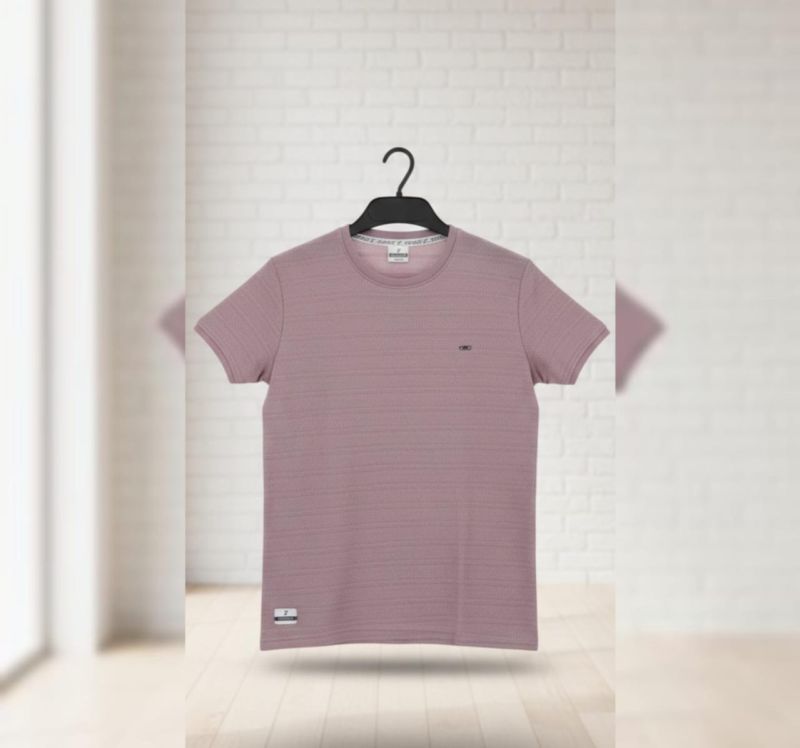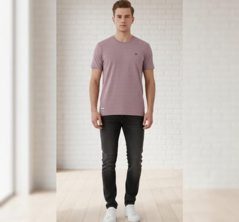 Elevate your casual wardrobe with this premium Mauve Textured Crew Neck T-Shirt. Featuring a subtle horizontal micro-pattern, this tee offers more depth than a standard solid shirt
