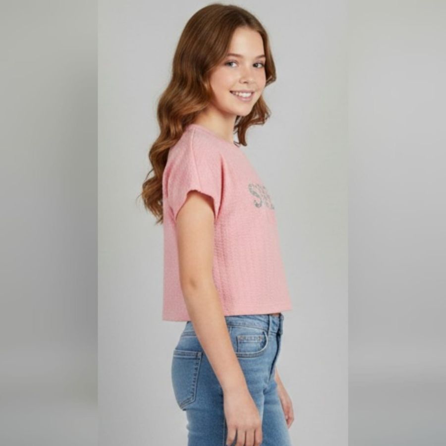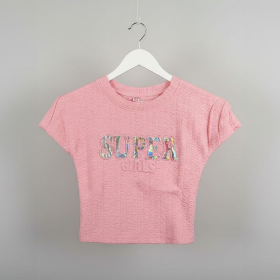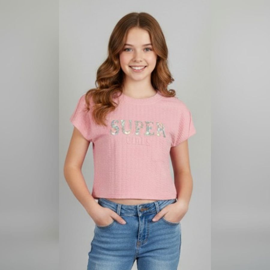 hat is a fun, vibrant crop top! It looks like a great piece for a casual, youthful summer outfit.