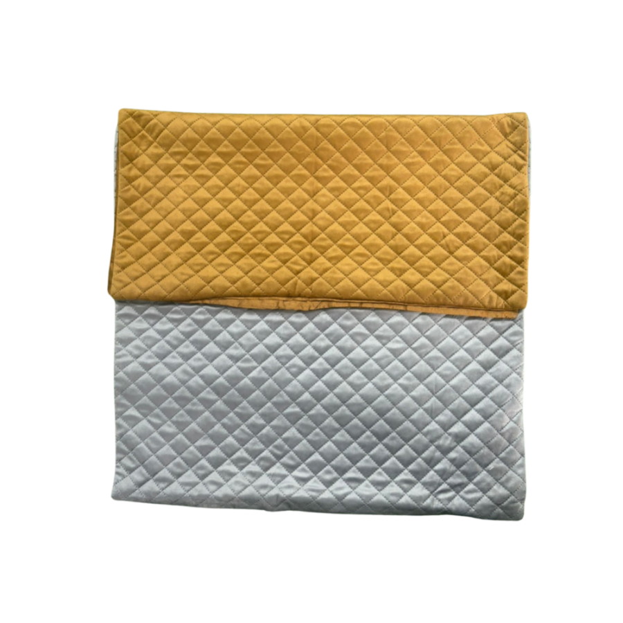 A Stylish Quilted Cushion Cover Made Of Polyester Fabric in Gold and Silver Colors.