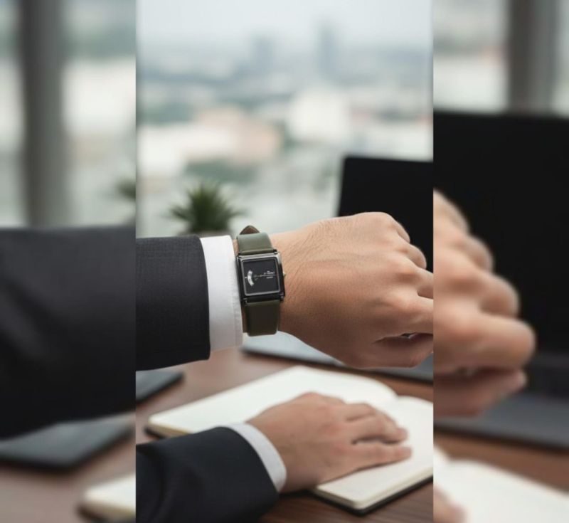Elevate your style with this Minimalist Square Dial Watch. Featuring a bold, jet-black face housed in a polished rectangular case, this watch redefines modern elegance.