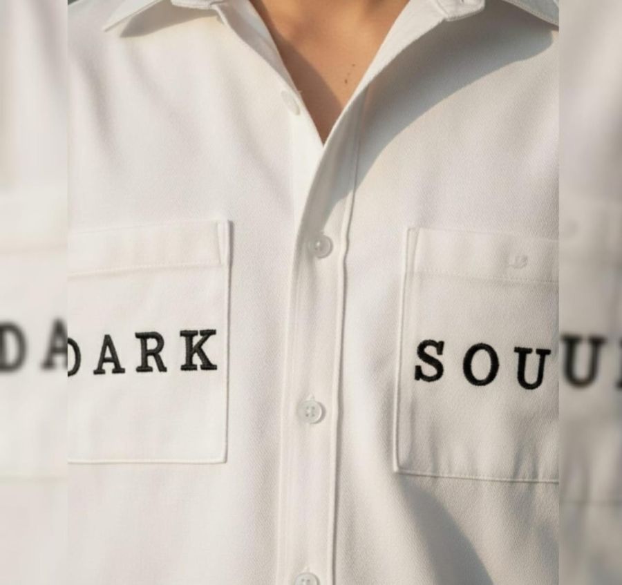 Make a bold statement with the Aura Stark button-down. This shirt is defined by its pristine white finish and minimalist urban design. Featuring structured dual chest pockets with high-density "DARK SOUL" embroidery, it offers a sharp, tailored look that transitions effortlessly from day to night.