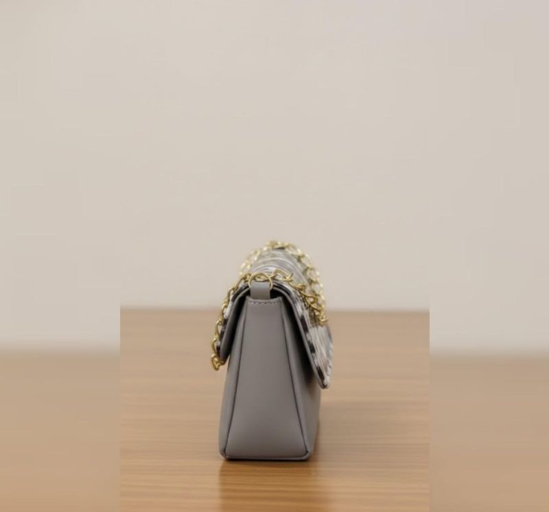 Hardware: A decorative gold-tone chain is draped across the front flap, adding a touch of luxury and visual interest.