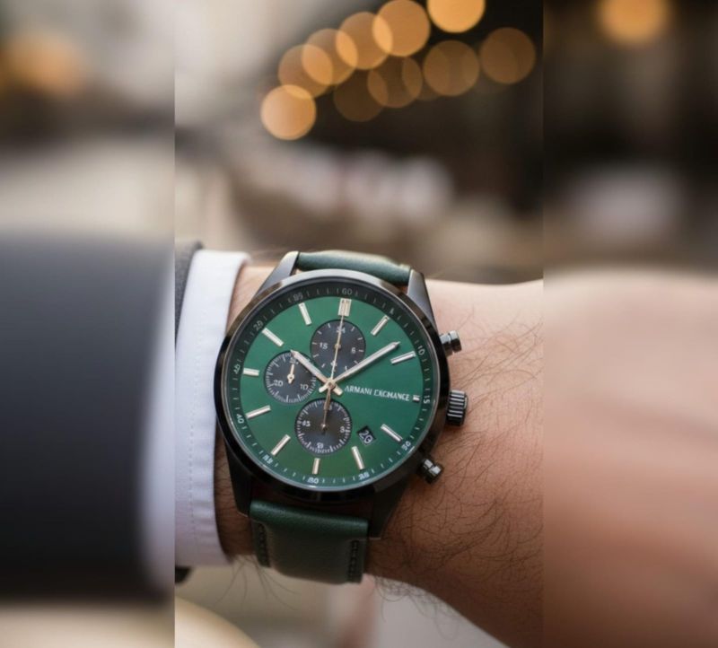 Define your style with the Emerald Stealth Chrono, a timepiece that blends bold color with a sleek, modern aesthetic. This watch features a brilliant Emerald Green sunray dial set within a polished Black stainless steel case.