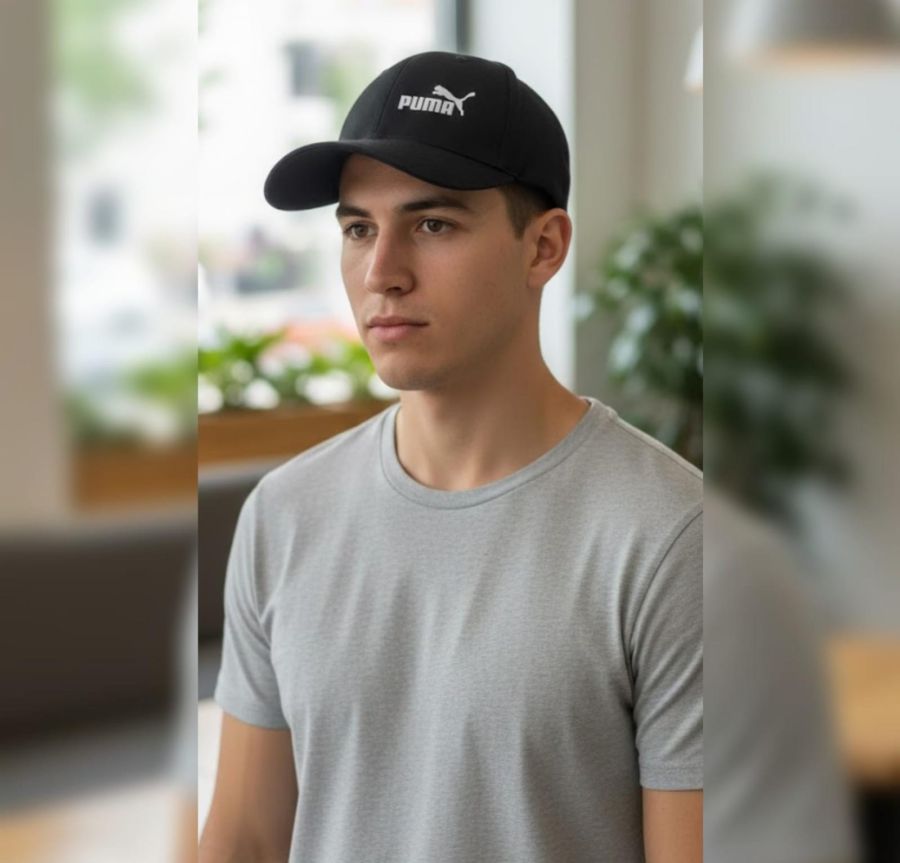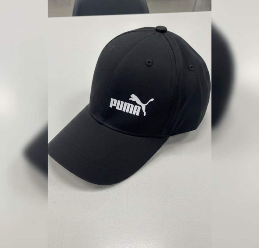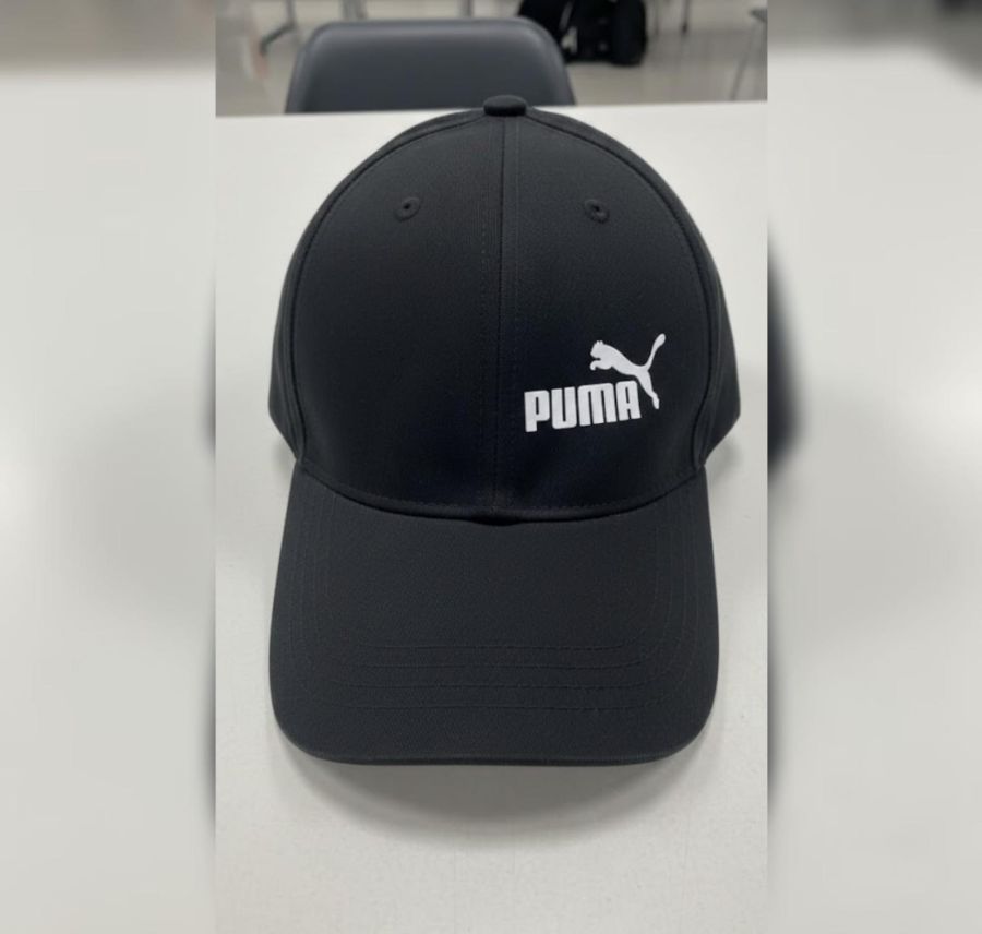 Logo: The iconic Puma Cat logo and wordmark, likely embroidered in white for high contrast against the black fabric.