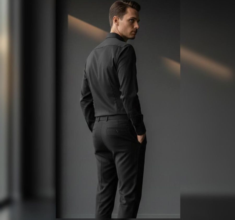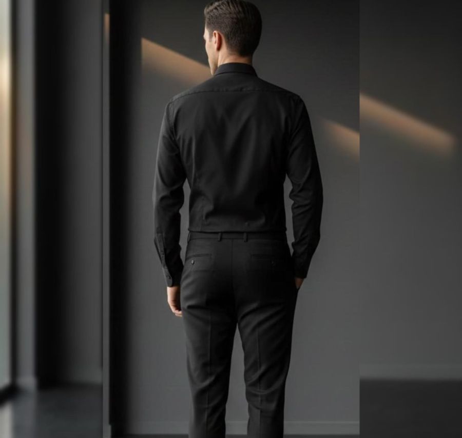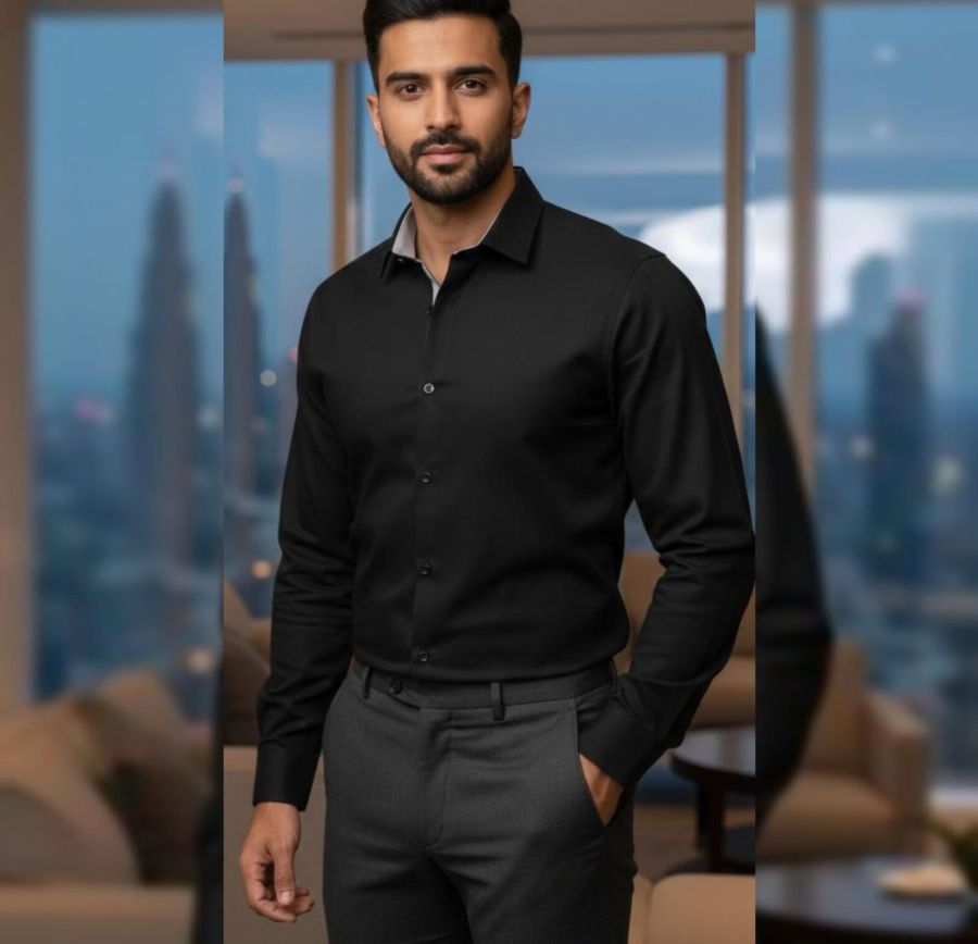Elevate your professional wardrobe with our Executive Onyx Button-Down. Crafted from a premium, high-density cotton blend, this shirt offers a sleek, matte finish with a subtle stretch for all-day comfort. Featuring a structured semi-spread collar with a contrasting light-grey inner lining and tailored "slim-fit" stitching, it’s designed to provide a sharp silhouette from the boardroom to the lounge.