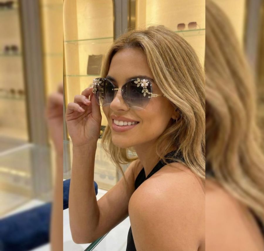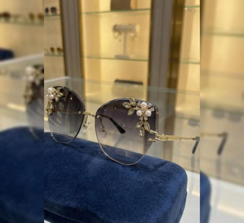 Elevate your eyewear collection with these stunning, high-fashion rimless sunglasses. Featuring hand-set pearl and crystal floral accents on the outer edges, these shades offer a sophisticated "butterfly" silhouette that flatters the face while providing a vintage, high-end aesthetic.