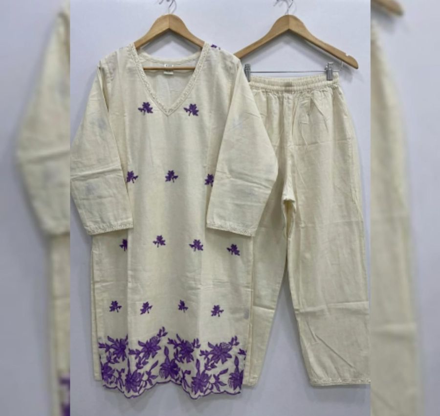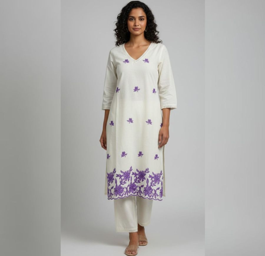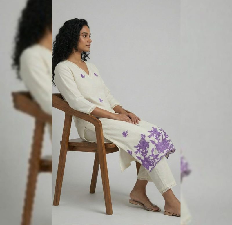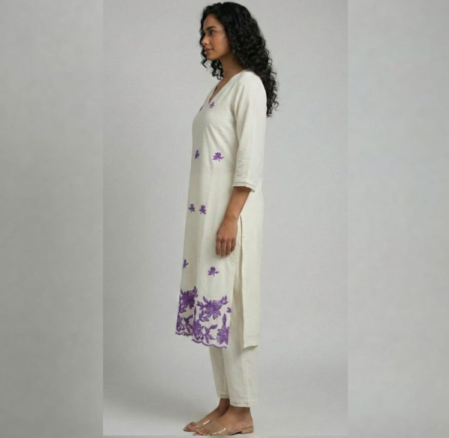 Floral Embroidered Chanderi Kurta Set,