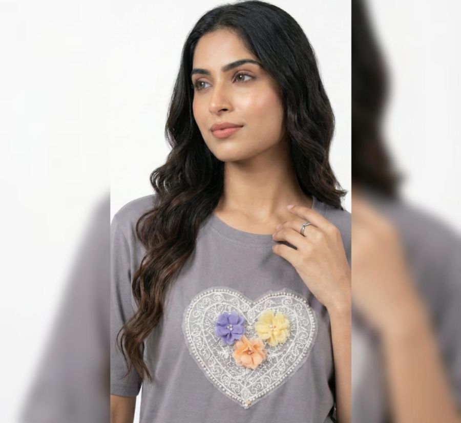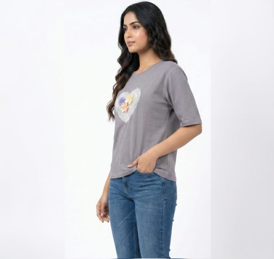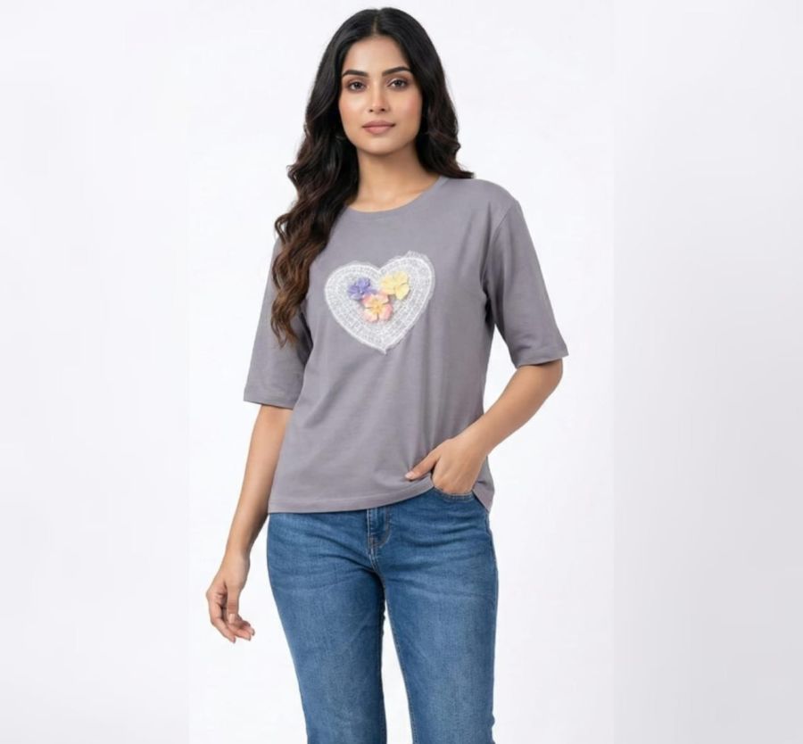 Floral Heart Embellished Tee