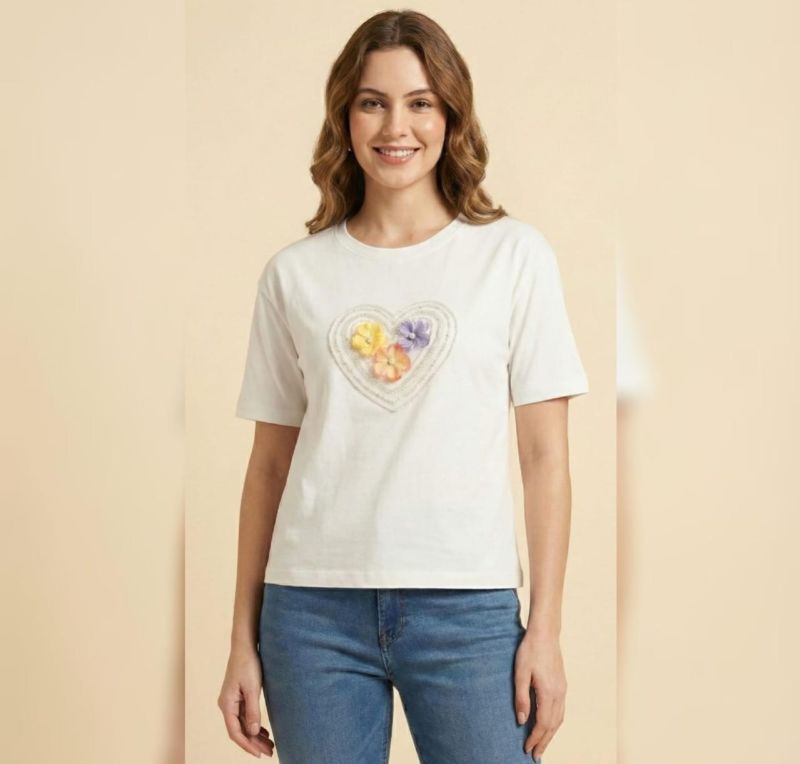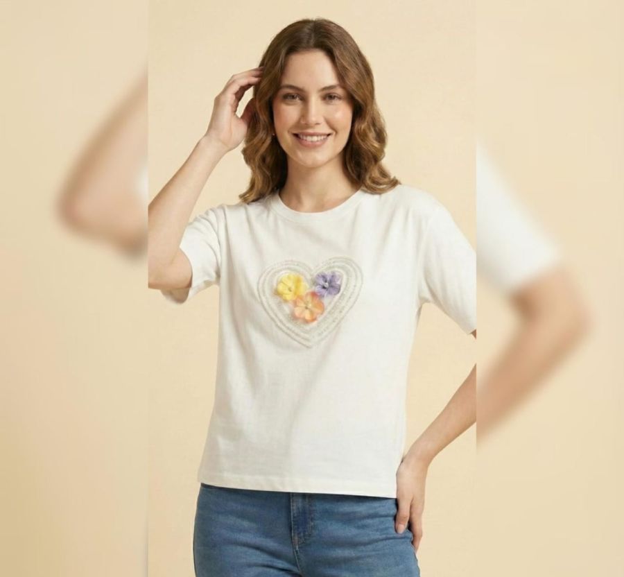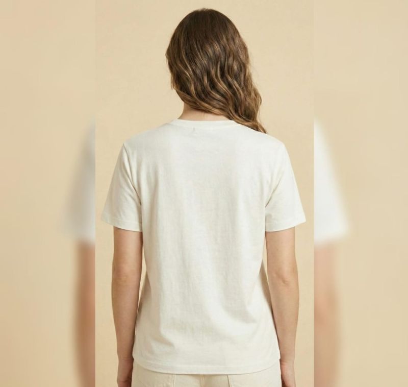 This White t-shirt is made from high-quality, breathable cotton fabric, offering a soft touch and a structured fit for everyday elegance.
