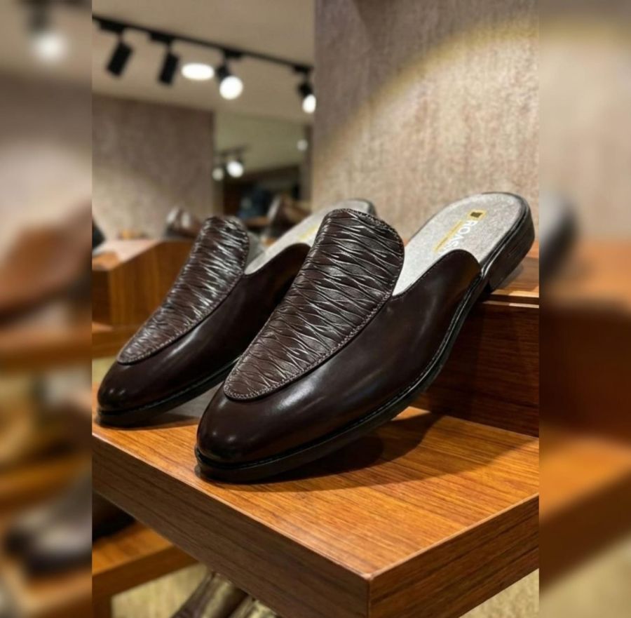 Men’s Backless Loafers (Mules), blending the formal aesthetic of a dress shoe with the ease of a slip-on. Based on the image, here is a detailed breakdown of their design and a standard size chart for the requested range.