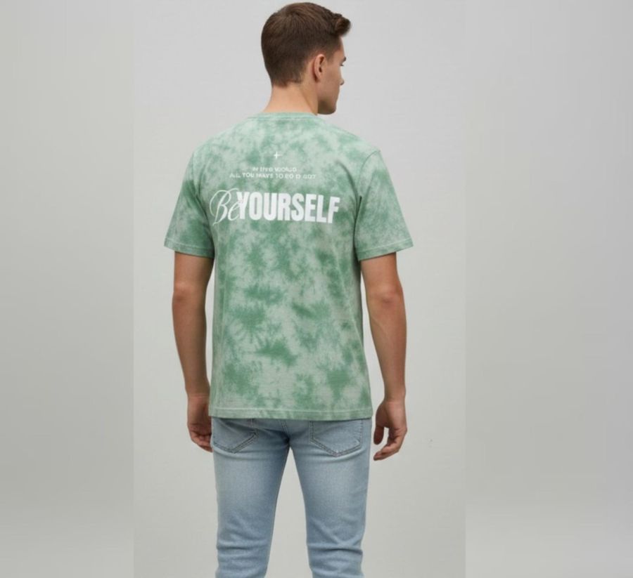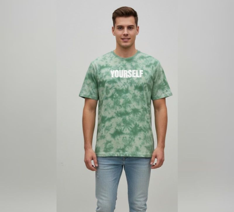 Elevate your street style with this premium Sage Green Tie-Dye Graphic T-Shirt. Featuring a bold, 3D-embossed "YOURSELF" slogan across the chest, this tee blends a relaxed aesthetic with a powerful message.