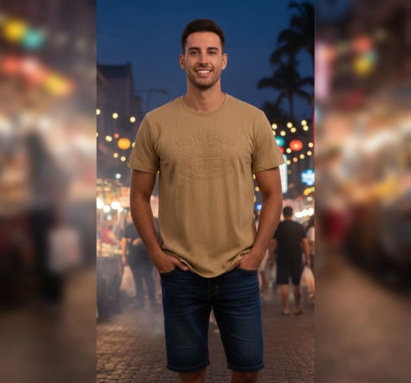 Elevate your casual wardrobe with our Urban Explorer Graphic Tee. Designed for those who appreciate a blend of street-style aesthetics and everyday comfort, this t-shirt features a subtle, tonal "Tokyo Sport" embossed graphic. Its earthy khaki tone makes it a versatile staple for night markets, travel, or weekend hangouts.