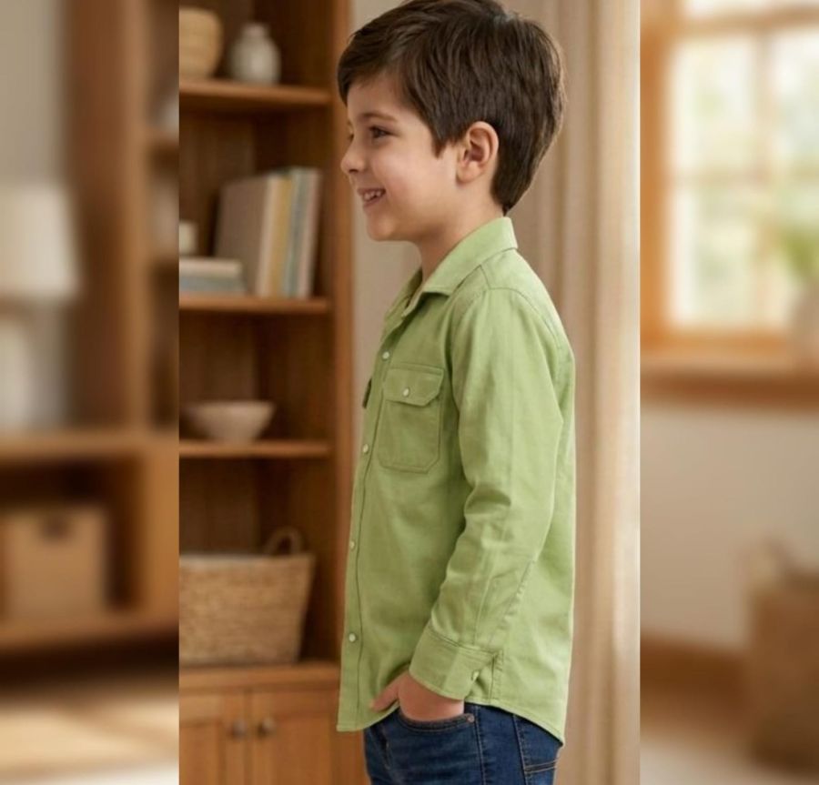 Fastening: Full front button-down (likely snap buttons for easy dressing).