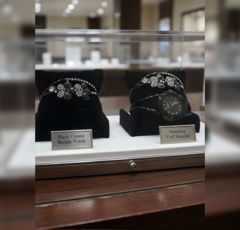 Elevate your evening attire with this exquisite Midnight Blossom Set. Featuring a sleek, minimalist black watch and a matching floral-motif cuff bracelet, this duo is encrusted with shimmering crystals that catch the light at every turn.