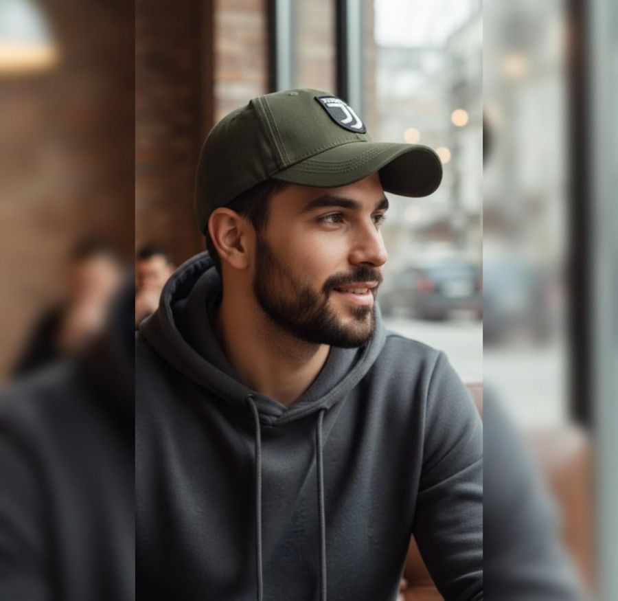 Style: Six-panel baseball cap (likely a "dad hat" or structured curved-brim style).