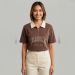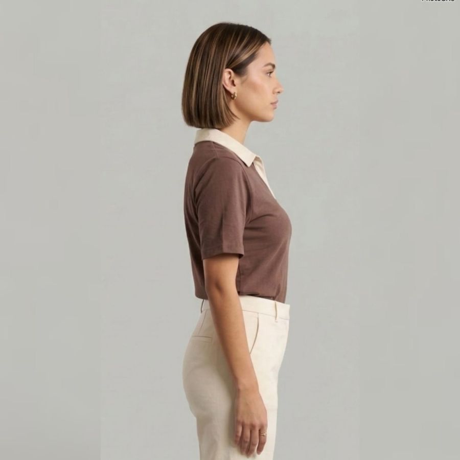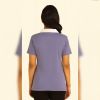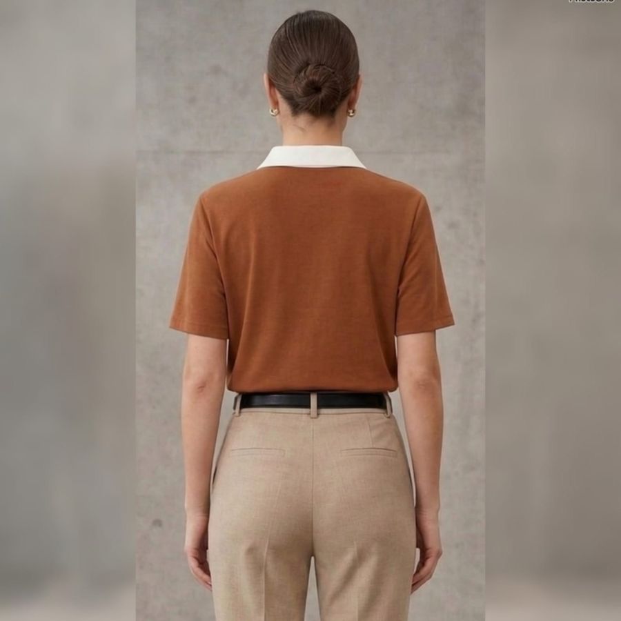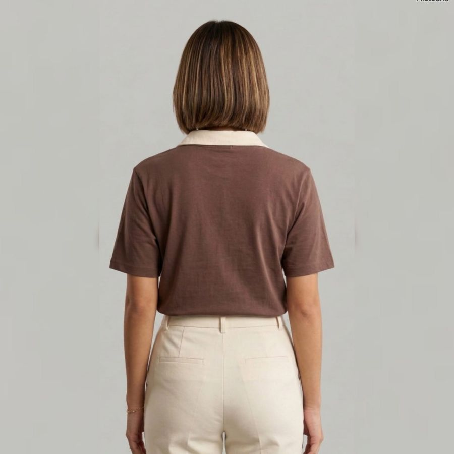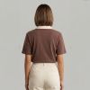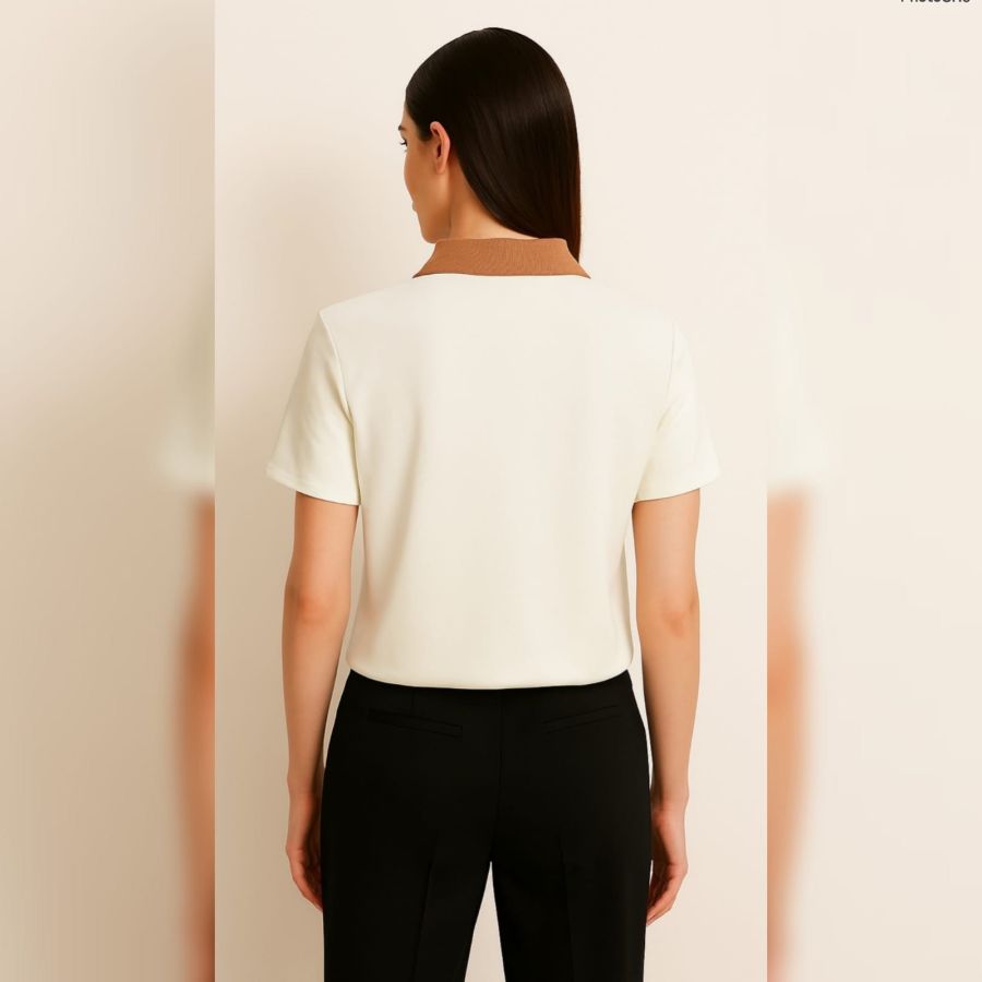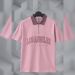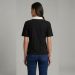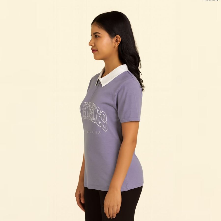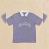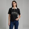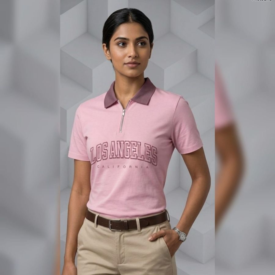 A contemporary take on the classic polo, this black jersey top features a contrasting white collar and a modern zipper neckline. Embellished with a crisp "LOS ANGELES CALIFORNIA" varsity-style graphic, it offers a preppy yet edgy aesthetic perfect for everyday urban wear.