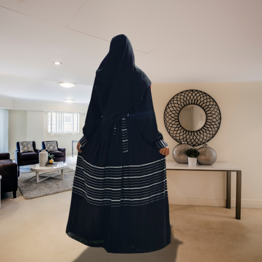 Elegant and modest, this abaya burqa is crafted from breathable Firdaus fabric, offering a soft drape and all-day comfort.