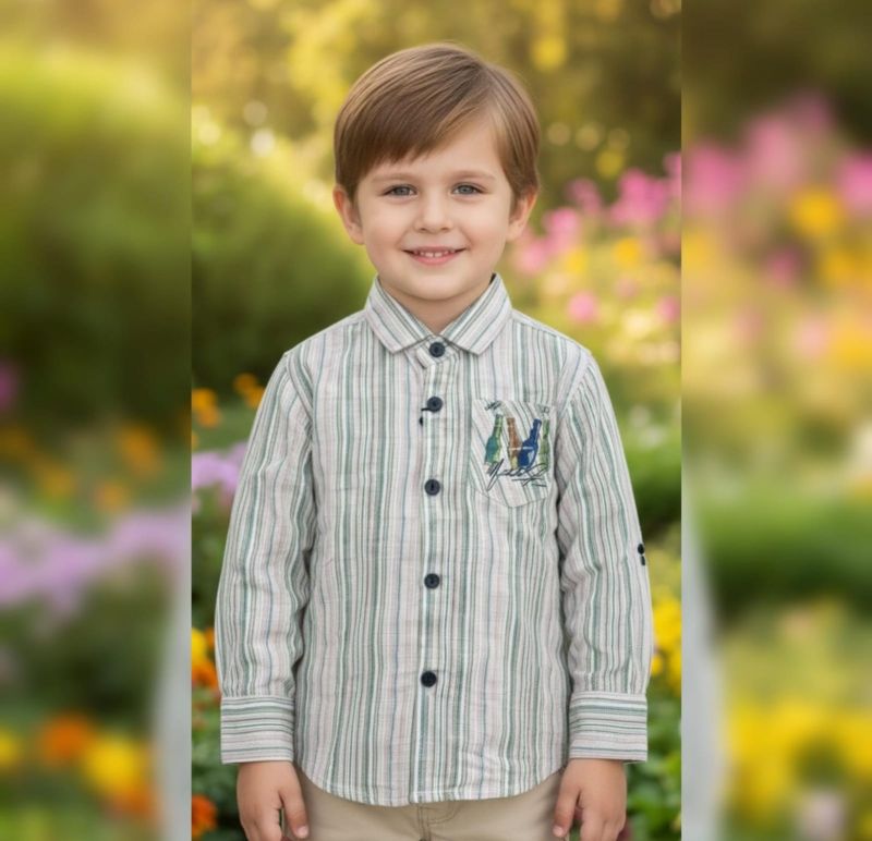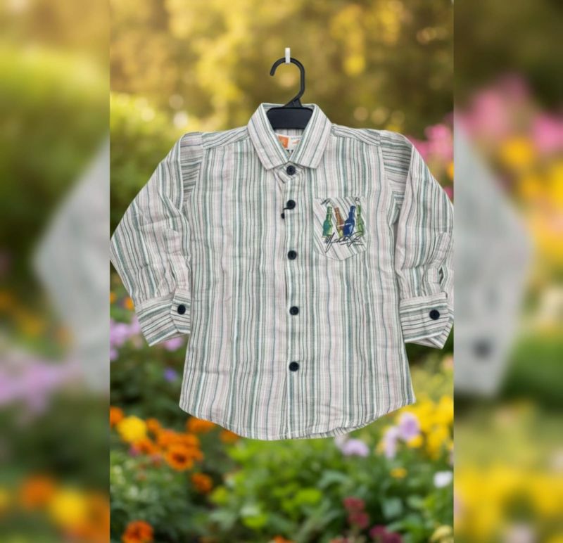That is a charming little button-down! It looks like a classic, comfortable choice for a young child, especially with that breezy vertical stripe pattern.