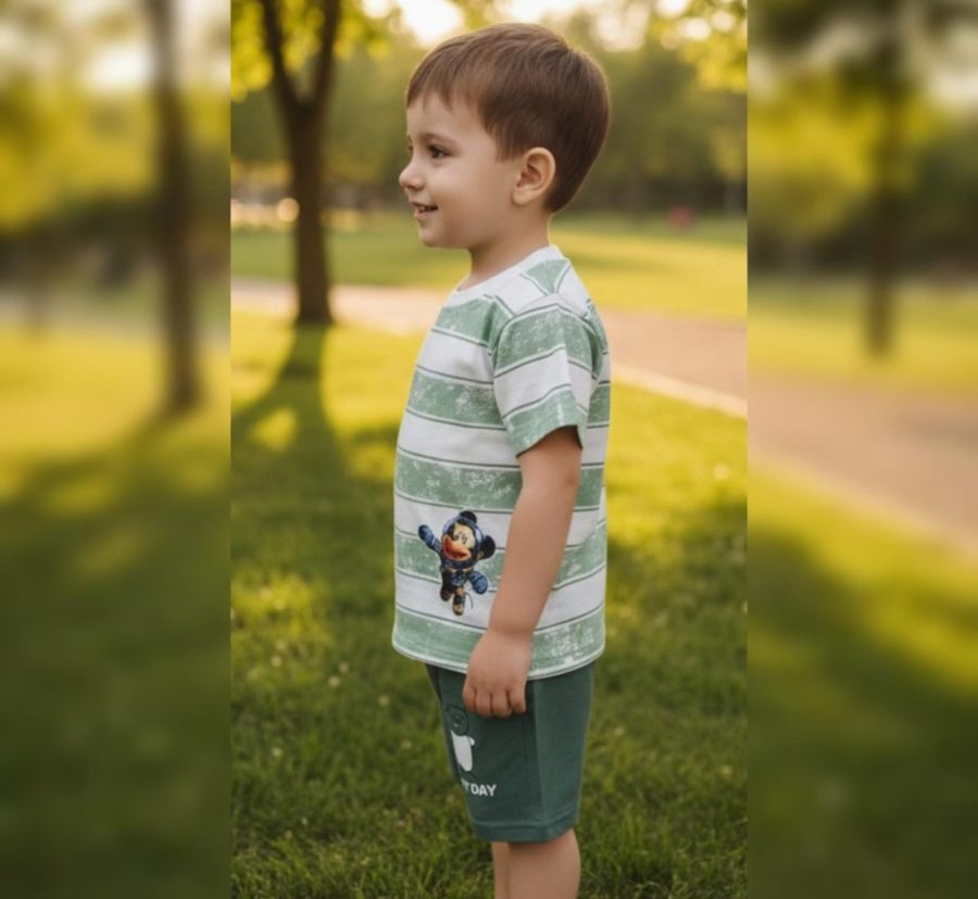 Dress your little one for adventure with this vibrant and comfortable summer co-ord set. Featuring a blend of classic stripes and beloved animated-style graphics, this outfit is designed for both style and play. The soft, breathable fabric ensures your baby stays cool and happy all day long.